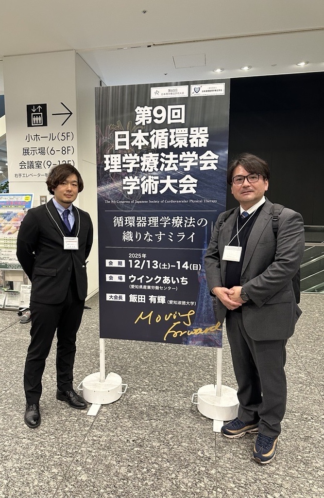 2025年12月13日(土)・14日(日)にウインクあいち(愛知県産業労働センター)で開催された第9回日本循環器理学療法学会学術大会において,三川研究室の大学院修了生である田邉先生が研究発表を行いました。